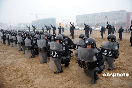 2月12日下午,河北廊坊開始下起小雨,由山東公安邊防總隊組建的中國第八支赴海地維和警察防暴隊在雨中進(jìn)行處置群體性事件訓(xùn)練。中新社發(fā) 由永懷 攝