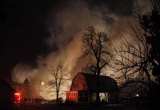 圖:美飛機(jī)在紐約州墜毀 撞上民房后燃大火(2)