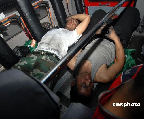 圖為13日凌晨3點多,疲倦的滅火消防官兵得以在消防車倉內(nèi)休息片刻。中新社發(fā) 穆長梓 攝