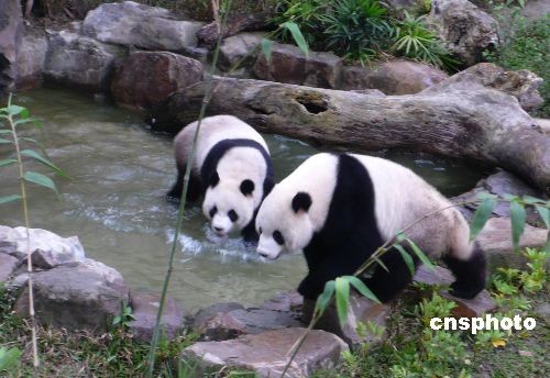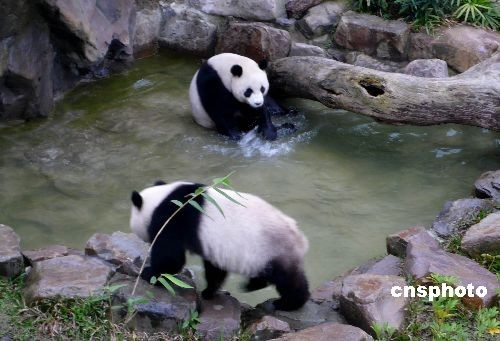 二月十四日,大陸贈(zèng)臺(tái)大熊貓“團(tuán)團(tuán)”和“圓圓”首次在臺(tái)北新家的戶外展示場(chǎng)與游客見面,再度掀起臺(tái)灣民眾的參觀熱潮。當(dāng)天,“團(tuán)團(tuán)”“圓圓”到戶外活動(dòng)的興致極好,常在草地上撒歡奔跑,“團(tuán)團(tuán)”樂山,不時(shí)爬到山坡的最高點(diǎn)俯視全場(chǎng); “圓圓”喜水,不時(shí)走進(jìn)水池戲水玩耍。中新社發(fā) 路梅 攝