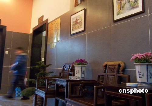 南京夫子廟四星級豪華公廁廳堂擺放著仿紅木太師椅。中新社發(fā) 王啟明 攝