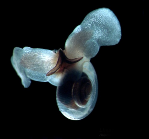 據(jù)臺灣東森新聞報道,整年冰天雪地的南北極,除了大家所熟之的北極熊和企鵝外,海底下其實還蘊(yùn)藏了豐富的生物。像是透明的螺種,因為頭頂上長著兩顆像豌豆的角,被稱做“蟠虎螺”;至于頭頂尖尖、睜著兩個圓圓大眼的可不是烏賊,而是全世界最耐寒的“獨(dú)角雪冰魚”。