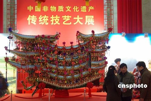 2月17日,在北京舉行的非物質(zhì)文化遺產(chǎn)傳統(tǒng)技藝大展上,上百位民間手工藝人各展絕活兒,引得人們的爭(zhēng)相觀看,并慷慨解囊購(gòu)買(mǎi)手工藝品。此次大展共分為9大單元,分別為剪紙繪畫(huà)、印刷裝潢、陶冶燒造、雕鐫塑作、五金鏨鍛、制茶釀造、木作編扎、織染紉繡、傳統(tǒng)醫(yī)藥。