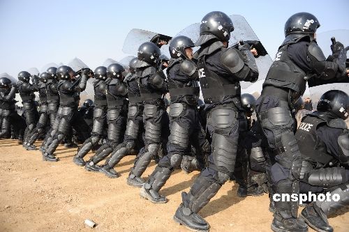 維和防暴隊員在進(jìn)行處置群體性事件演練。 中新社發(fā) 由永懷 攝