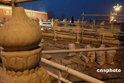 圖:北京天安門(mén)金水橋開(kāi)始加固修繕(2)