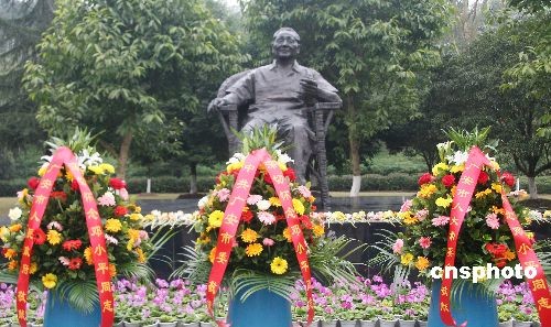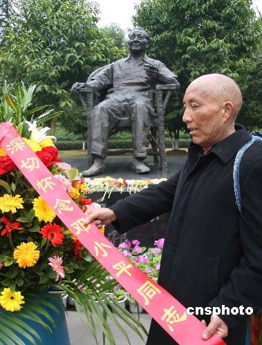 2月19日,廣安區(qū)協(xié)興鎮(zhèn)牌坊村村民在為小平銅像獻(xiàn)花以示懷念。當(dāng)日,是世紀(jì)偉人鄧小平逝世12周年紀(jì)念日,四川省廣安市和來自全國(guó)各地的各界人士紛紛自發(fā)前來為鄧小平銅像獻(xiàn)花以示深切懷念。中新社發(fā) 杜修戰(zhàn) 攝