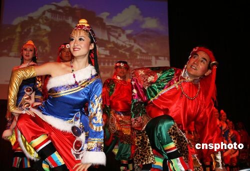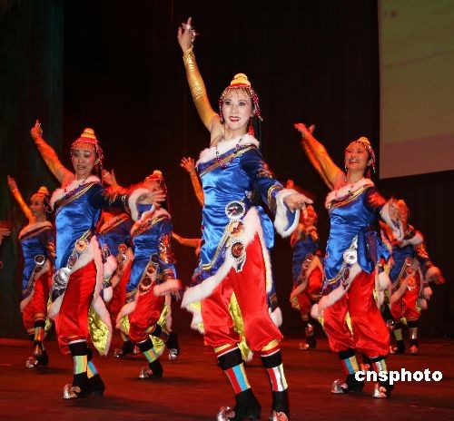 為歌頌今日西藏的變化,中國民族舞蹈演員與當?shù)孛绹霞又萑A人華僑一起進行了多次西藏民族舞蹈演出,受到當?shù)厝A人華僑熱烈歡迎。