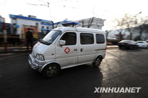 2月22日,一輛救護車正趕往事故現(xiàn)場。燕雁 攝