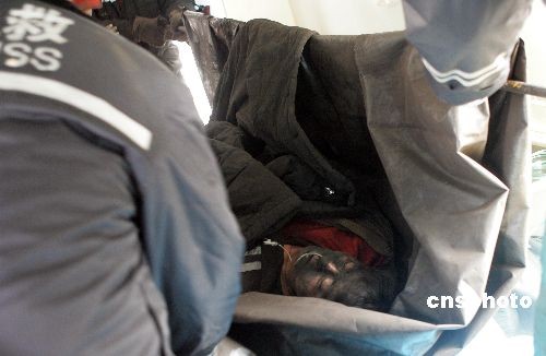 圖為成功獲救礦工送往醫(yī)院途中。中新社發(fā) 張?jiān)?攝