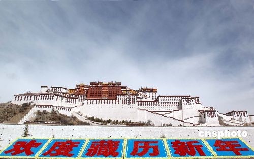 圖:布達(dá)拉宮巨型花朵字幅迎藏歷新年