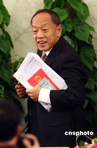 3月4日,十一屆全國人大二次會(huì)議新聞發(fā)布會(huì)在北京人民大會(huì)堂舉行,大會(huì)發(fā)言人李肇星手拿《聯(lián)合國憲章》和《中華人民共和國憲法》出席發(fā)布會(huì),笑對記者的刁鉆提問。中新社發(fā) 杜洋 攝