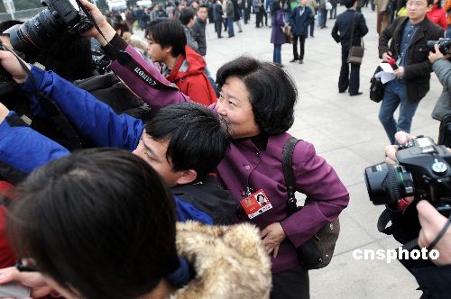 3月3日,愛好攝影的全國政協(xié)委員、浙江省政協(xié)副主席盛昌黎,在全國兩會期間“機不離身”,隨時準(zhǔn)備拍攝身邊發(fā)生人和事。圖為盛昌黎委員正在和記者“搶拍”。中新社發(fā) 宋健浩 攝