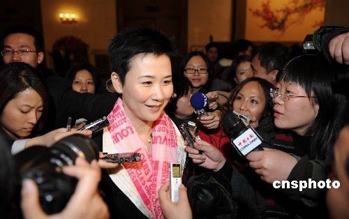 3月3日,全國政協(xié)十一屆二次會議在北京人民大會堂開幕。圖為全國政協(xié)委員李小琳在人民大會堂接受各路媒體采訪。中新社發(fā) 孫洪杰 攝