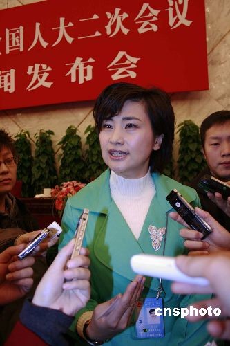 2009年3月4日,吳小莉參加十一屆全國人大二次會議新聞發(fā)布會時接受采訪,針對“香港如何應對金融危機”這一話題回答了記者提問。中新社發(fā) 金立冬 攝