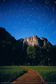 “夜空下的世界”項(xiàng)目中的許多照片都需要長(zhǎng)時(shí)間的曝光。要想順利拍攝這些照片,往往需要機(jī)會(huì)和技巧。這幅群星環(huán)繞北極星的照片就是拍攝于加州約塞米蒂國(guó)家公園的上空。北極星屬于小熊星座,距離地球約400光年,是夜空能看到的亮度和位置較穩(wěn)定的恒星。北極星是天空北部的一顆亮星,離北天極很近,差不多正對(duì)著地軸,因此從地球上看,它的位置幾乎不變,人們可以用它來(lái)辨別方向。