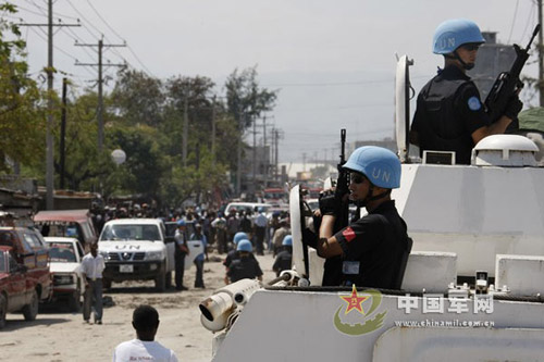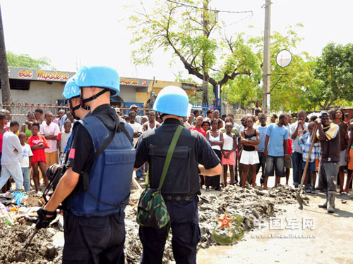 近日,300余名海地民眾在太陽城國家一號公路舉行游行示威,并設(shè)置路障,致使交通堵塞。中國第七支駐海地維和警察防暴隊(duì)根據(jù)聯(lián)海團(tuán)指令,迅速趕往現(xiàn)場進(jìn)行處置,成功化解了矛盾,及時恢復(fù)了交通。