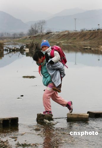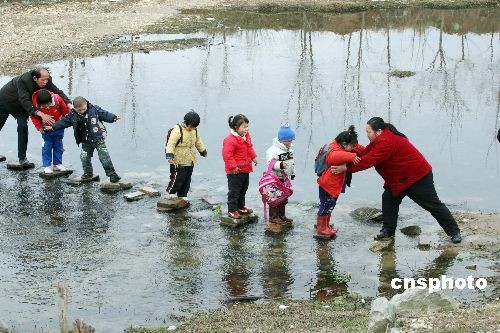 圖:300多學(xué)生每日踩石頭過河上學(xué)(2)