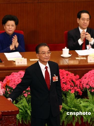 3月5日上午,十一屆全國(guó)人大二次會(huì)議在北京人民大會(huì)堂開(kāi)幕,國(guó)務(wù)院總理溫家寶作《政府工作報(bào)告》,代表們多次報(bào)以熱烈掌聲。中新社發(fā) 杜洋 攝