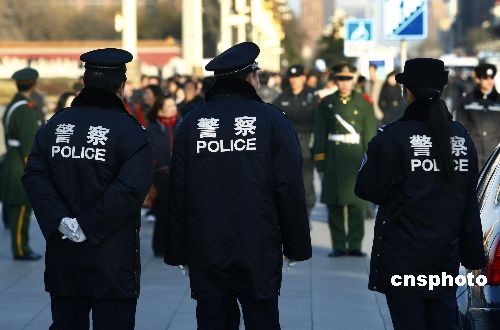 3月5日,北京警方在天安門廣場周邊巡邏,確保“兩會”安全。中新社發(fā) 鄭雄增 攝