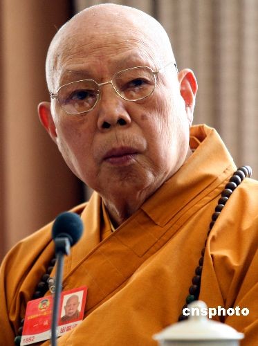 在北京參加“兩會”的全國政協(xié)委員一誠大和尚,3月5日下午主持宗教界小組討論會。中新社發(fā) 宋吉河 攝