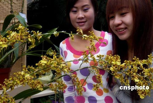 3月7日,為慶!叭.八”國(guó)際婦女節(jié)的到來(lái),北京植物園舉行賞花送花活動(dòng)。特設(shè)的“女人花”展區(qū)內(nèi)展示的花卉名稱中均帶有“女”字:如“小葉女貞”、“舞女蘭”、“美女櫻”等。每位在熱帶展覽溫室參觀的女士,可以得到一束美麗的康乃馨。中新社發(fā) 錢(qián)興強(qiáng) 攝