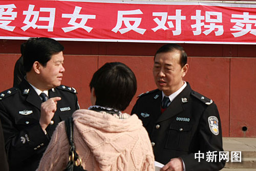 3月8日,一名婦女正尋求幫助。當(dāng)日,甘肅警方聯(lián)合婦聯(lián)宣傳法律知識(shí),旨在提高公眾反拐賣意識(shí)。