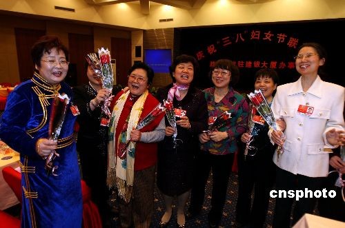 3月8日晚,參加全國(guó)政協(xié)十一屆二次會(huì)議的婦聯(lián)界女委員們?cè)隈v地賓館共度婦女節(jié)。中新社發(fā) 傅丹丹 攝