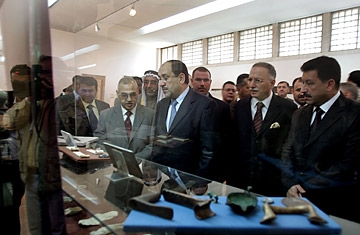 目前狀況:博物館于今年二月份重新開館,但是伊拉克的官員們只尋回了6000多個(gè)丟失文物,目前,這批被追回文物被安置在博物館的一個(gè)特殊儲(chǔ)藏館內(nèi)。伊拉克當(dāng)局一直在進(jìn)行追討,一件一件的追回著丟失的文物,他們努力的保護(hù)著伊拉克寶貴的文化寶藏,以防止文物在黑市上被交易。
