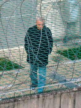 日前,弗萊茨勒在監(jiān)獄里放風(fēng)時(shí)的照片被媒體公布,從這組照片中我們看到,弗萊茨勒穿著藍(lán)色的牛仔褲和高領(lǐng)的黑色夾克,頭低垂,眼睛盯著地面,手深深地插在上衣口袋里。他在監(jiān)獄的空?qǐng)錾弦粋(gè)人轉(zhuǎn)著圈子踱步,周?chē)菙?shù)米高帶著鐵絲網(wǎng)的監(jiān)獄圍墻。