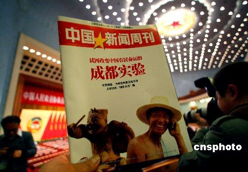 3月3日至13日,全國(guó)“兩會(huì)”在北京人民大會(huì)堂召開(kāi),與會(huì)人員在會(huì)前關(guān)注《中國(guó)新聞周刊》。中新社發(fā) 宋吉河 攝