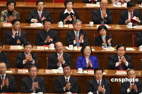 3月13日,第十一屆全國人民代表大會第二次會議在北京人民大會堂舉行閉幕會,全國人大代表鼓掌慶祝通過各項決議。中新社發(fā) 盛佳鵬 攝