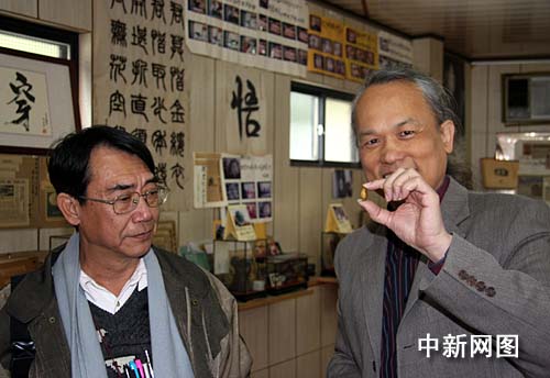 3月14日,由臺北縣政府文化局委托的專家組在“臺北縣博物館家族”之一的陳逢顯毫芒雕刻博物館內(nèi)調(diào)研。圖為臺灣著名微雕家陳逢顯(右一)向?qū)<医M成員展示他以臺北故宮博物院所藏“多寶閣”果核微雕作品為范本,正在以橄欖核進(jìn)行雕刻的作品。 作者:陳立宇