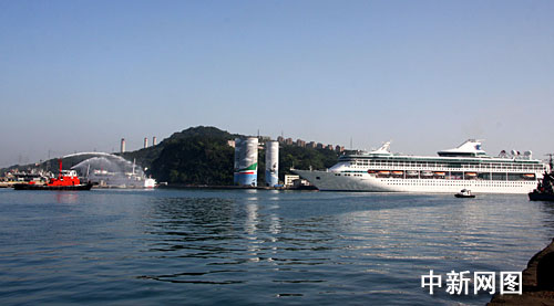 三月十六日上午八時二十分許,“安利心印寶島萬人行”首航郵輪“海洋神話號”載著一千六百名安利中國大陸首發(fā)人員緩緩駛進(jìn)臺灣基隆港。這是兩岸基本實(shí)現(xiàn)“三通”以來第一個抵臺的郵輪直航團(tuán)。中新社記者 陳立宇 攝