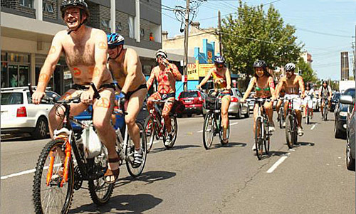 圖:彩繪、樹皮遮體蹬車 裸體自行車賽呼吁環(huán)保(7)