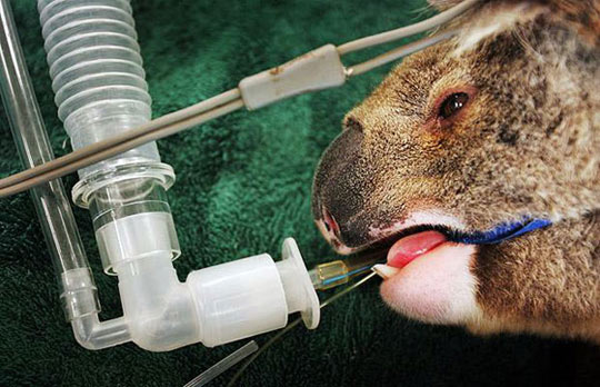 一只受傷的考拉在澳大利亞動物醫(yī)院接受治療。(自然歷史一等獎)