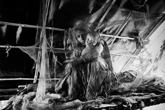 印度比哈爾邦發(fā)生洪水災害后,在難民營的一對母女。(當代問題一等獎)