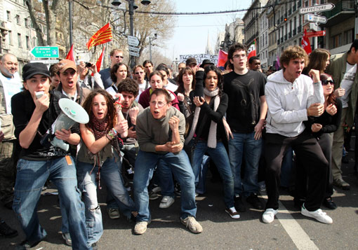 3月19日法國各大工會在全國各地聯(lián)合組織罷工和示威游行等活動,抗議政府在應對當前經濟危機過程中忽視勞動者權益和社會福利。