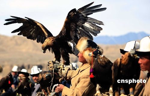 3月20日,位于新疆西部天山南脈腹地的阿合奇縣舉辦第二屆獵鷹節(jié),當(dāng)?shù)乜聽柨俗巫迕癖娋奂谠摽h賽馬場,展示自家馴養(yǎng)的上百只獵鷹。當(dāng)?shù)乜聽柨俗巫羼Z養(yǎng)獵鷹有著悠久的歷史,至今仍完整保留著原始的馴養(yǎng)方式,被譽(yù)為中國“獵鷹之鄉(xiāng)”,當(dāng)?shù)乜聽柨俗巫逡脖蛔u(yù)為“鷹王”。他們在放牧的同時,經(jīng)常騎馬到高達(dá)近百米的高山頂上,將自己馴養(yǎng)的獵鷹放飛。中新社發(fā) 劉新 攝