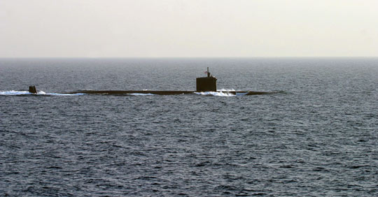 圖:美軍核潛艇與運(yùn)輸艦相撞 致大量泄油(2)