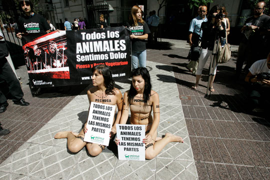 組圖:美女上演"裸身切割" 呼吁保護(hù)動(dòng)物(3)