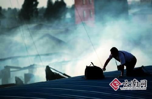 22日,因著火紙廠警戒線還沒(méi)有解除,很多記者都被擋在外面,尤其是一些扛著照相機(jī)的記者,更是惹眼。昆明某報(bào)社攝影記者高某昨日下午6點(diǎn)左右再次來(lái)到現(xiàn)場(chǎng)時(shí),被擋在警戒線外。高某為了抓拍鏡頭,他爬到隔壁一家工廠的房頂上,不小心踩通房頂,“砰”地一聲,從6米多高房頂?shù)粼诘厣希?dāng)時(shí)不能動(dòng)彈,幸好被一起采訪的同事發(fā)現(xiàn)。