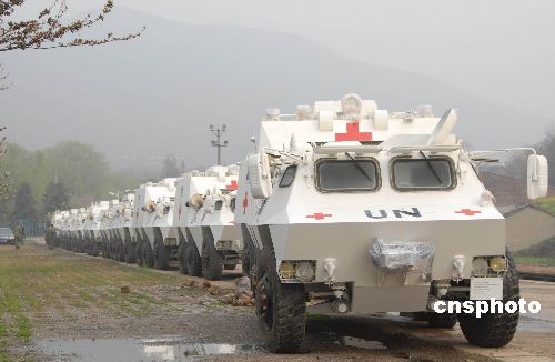 3月23日,中國首批研制成功的數(shù)十輛05P系列保障車交裝啟運遠赴非洲,加入維和行列。中新社發(fā) 李遠波 攝