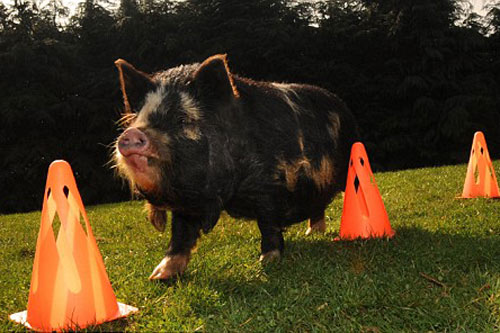 現(xiàn)在“蘇”已學(xué)會按照指令與人握手,通過隧道、在圓錐體周圍繞行,爬上坡道,甚至能完成從一數(shù)到八的數(shù)數(shù)!疤K”的主人溫迪-斯科達摩里稱,“蘇”很有天賦。她相信,“蘇”不僅能在靈活性測試中擊敗犬類,而且能像一部電影中的明星豬那樣學(xué)會如何管理羊群。