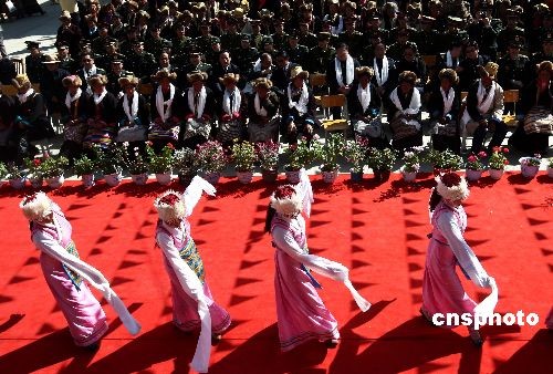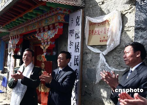 3月24日,在“西藏百萬(wàn)農(nóng)奴解放紀(jì)念日”即將來臨時(shí),作為西藏民主改革第一村的西藏山南地區(qū)乃東縣昌珠鎮(zhèn)克松村與西藏山南軍分區(qū)某部一起舉行“軍民共建小康示范村”揭牌儀式。此后,克松村民的基礎(chǔ)設(shè)施建設(shè)、教育、醫(yī)療等各方面都將得到解放軍更多的幫助。中新社發(fā) 杜洋 攝