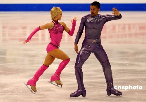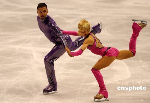 當(dāng)?shù)貢r間3月24日晚,2009年花樣滑冰世界錦標(biāo)賽在洛杉磯正式開幕。在當(dāng)天晚上舉行的雙人滑短節(jié)目比賽中,衛(wèi)冕冠軍德國組合薩維琴科和索爾科維充滿現(xiàn)代感的表演征服了全場觀眾和裁判,最終以72.30分的最高分名列第一。中新社發(fā) 張煒 攝