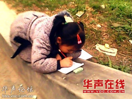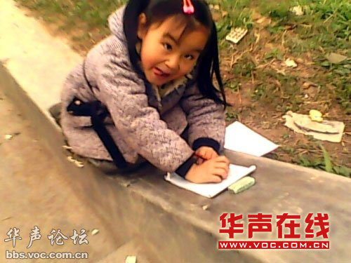 “我媽媽叫我在這里做作業(yè)”今天(9日),網(wǎng)友“奧馬巴”在論壇發(fā)了一組小女孩在工地寫作業(yè)的照片,照片中的女孩神態(tài)自若,稱爸爸媽媽就在工地上做事。小女孩的稚嫩的語(yǔ)言讓網(wǎng)友十分感動(dòng),喚她為“史上最美的農(nóng)民工女兒”。