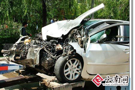 4月14日上午11點(diǎn)40分許,昆明官南路和小街的交叉路口處,一輛公交車(chē)與一輛轎車(chē)發(fā)生碰撞,造成轎車(chē)車(chē)頭嚴(yán)重變形。而公交車(chē)為避讓轎車(chē),行駛到河堤邊后失控落入路旁的明通河。