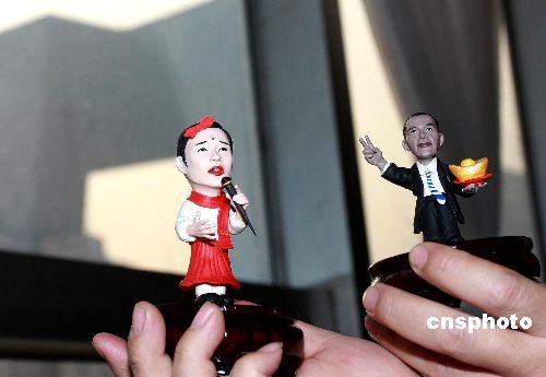 2月8日,北京朝陽區(qū)文化館,非物質(zhì)文化遺產(chǎn)項目傳承人“面人彭”彭小平,展示他精心制作的面人新作品——小沈陽和奧巴馬。當日,為迎接正月十五元宵節(jié),朝陽區(qū)文化館舉辦非物質(zhì)文化遺產(chǎn)手工藝作品交流活動,10余位民間藝術(shù)家進行現(xiàn)場技藝展示。中新社發(fā) 鄭雄增 攝
