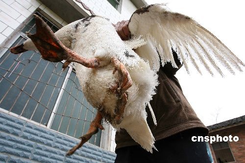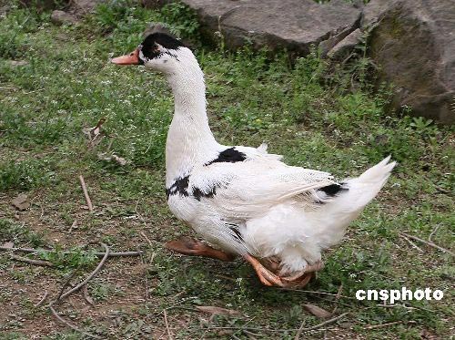 2009年3月10日,在四川省綿陽(yáng)市游仙區(qū)忠興鎮(zhèn)涌泉村一社張?jiān)茲杉遗臄z的一只長(zhǎng)了四只腳的鴨子。這只鴨子除了長(zhǎng)有兩只正常的腳之外,在兩只正常腳的根部分別多長(zhǎng)出了兩只腳狀的肢體。其特征和正常的鴨腳差不多,腳蹼腳趾俱全,只是看去稍顯小些。走路時(shí),兩只腳好像抱在屁股上不能活動(dòng)。 中新社發(fā) 蒲滔 攝