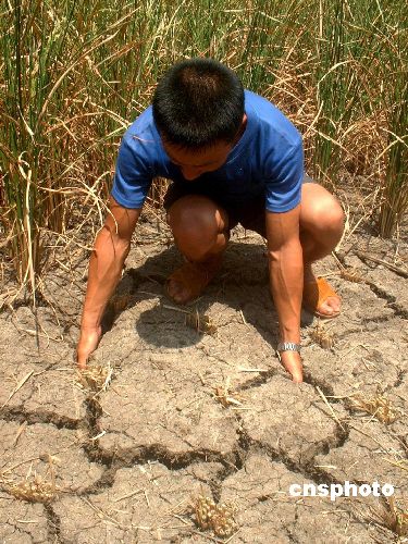 | 2006年8月15日,據(jù)貴州遵義政府辦公室披露:該市目前正遭受歷史上極為嚴(yán)重的旱災(zāi),干旱程度與1981年特大旱災(zāi)相當(dāng)。據(jù)介紹,全市農(nóng)作物受災(zāi)面積達(dá)420.46萬畝,已有153.43萬人發(fā)生飲水困難,旱災(zāi)直接經(jīng)濟(jì)損失7.09億元。旱情發(fā)生后,當(dāng)?shù)卣M織12個(gè)工作組和2000多名干部深入災(zāi)區(qū)檢查災(zāi)情、指導(dǎo)救災(zāi),調(diào)撥資金173萬元。同時(shí),氣象部門開展人工和飛機(jī)增雨作業(yè),共投入民兵1750人次,發(fā)射火箭彈115枚,發(fā)射炮彈3600多發(fā)。據(jù)氣象部門預(yù)測,該市旱情可能會(huì)持續(xù)到8月底。中新社發(fā) 張紹明 攝